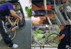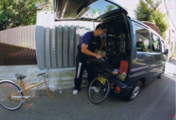 サイクルピットのメンバーや出張修理のメニュー、店内の様子です。